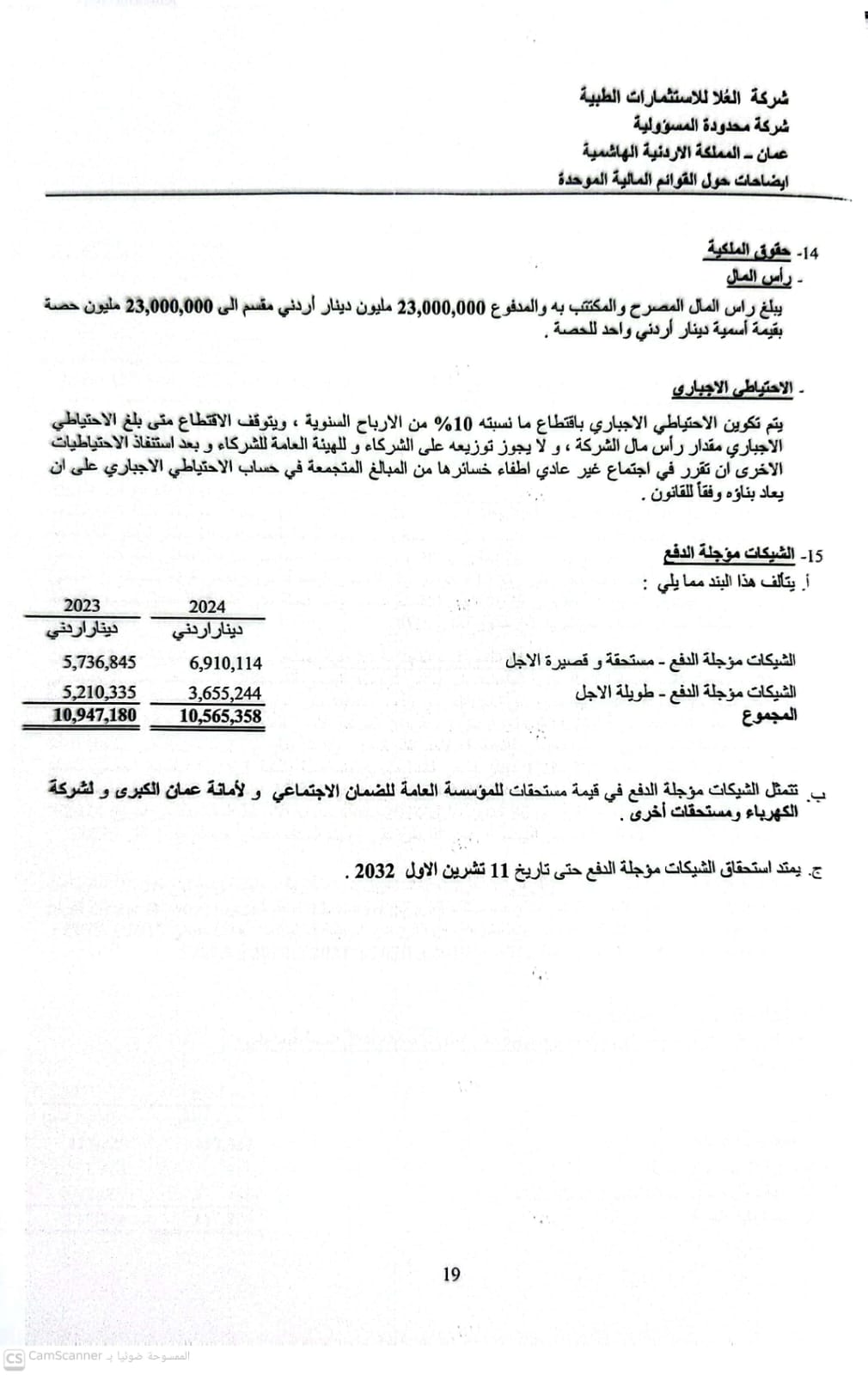 دعوة اجتماع هيئة عامة عادي لشركة العلا للاستثمارات الطبية ذات المسؤولية المحدودة  - مستشفى الاسراء بتاريخ 23-08-2025