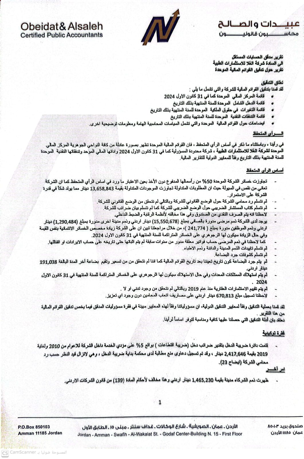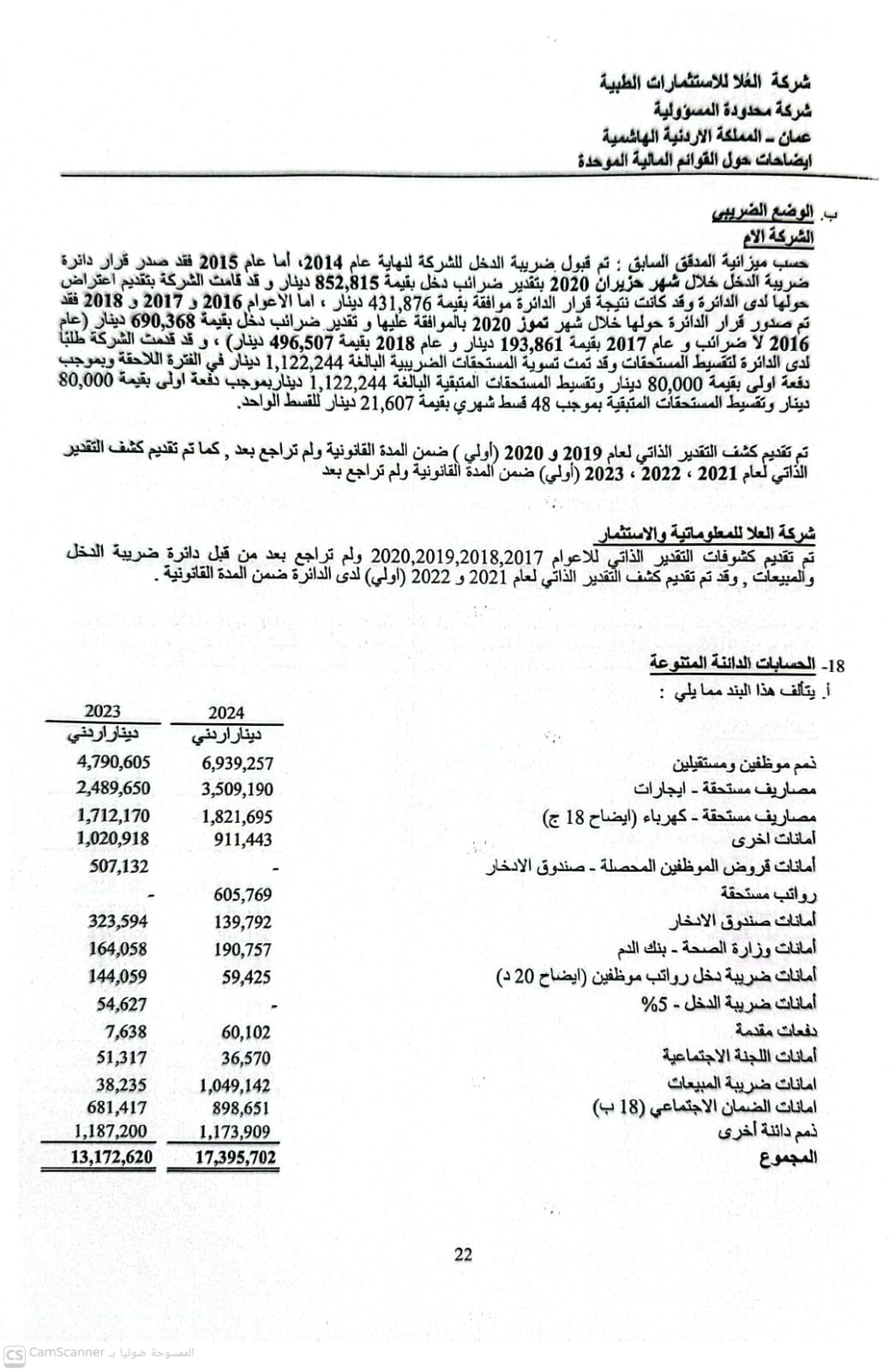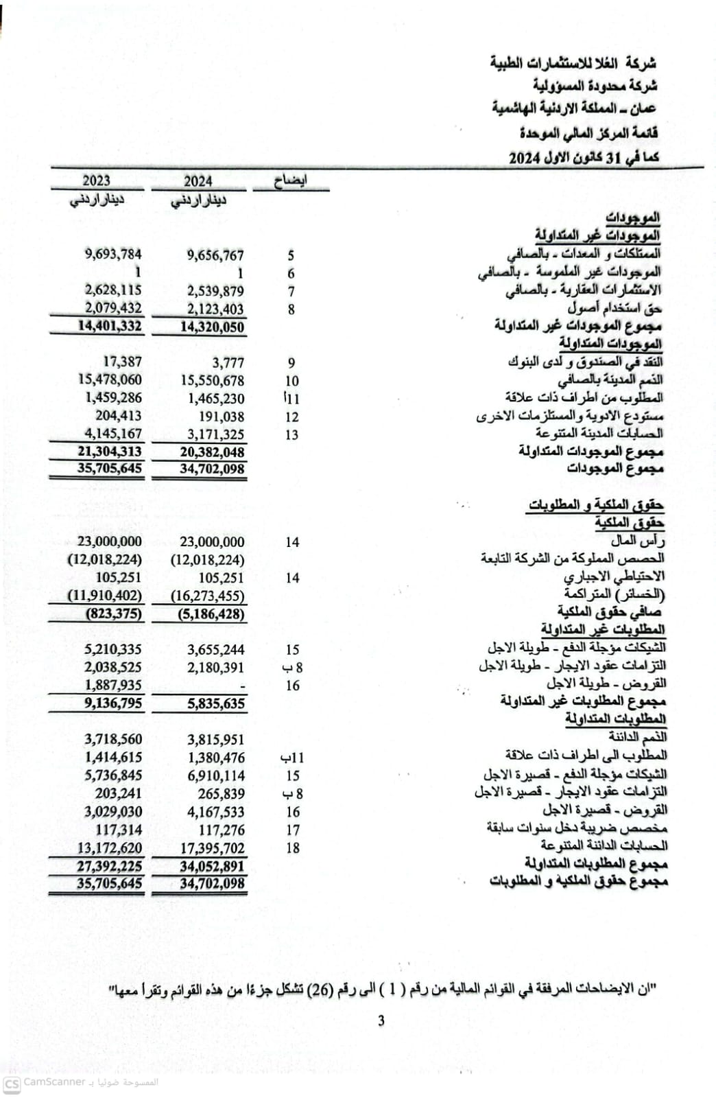 دعوة اجتماع هيئة امة عادي لشركة العلا للاستثمارات ذات المسؤولية المحدودة (مستشفى الاسراء ) المنعقد يوم الثلاثاء الموافق 24/3/2026